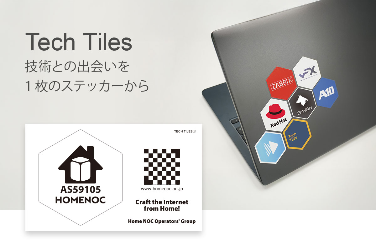 当団体は、株式会社エーピーコミュニケーションズ様が2025年6月に発表した業界横断型ステッカー企画「Tech Tiles(テック タイルズ)」に賛同し参加することになりました。2026年2月開催の「JANOG57 Meeting」において当団体のTech Tiles を配布いたします。